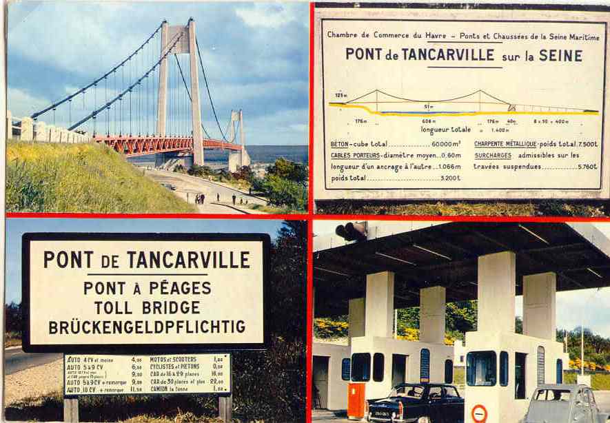 1e pauze op Tancarville brug, 2e pauze in Berville, 3e pauze in Fiquefleur.